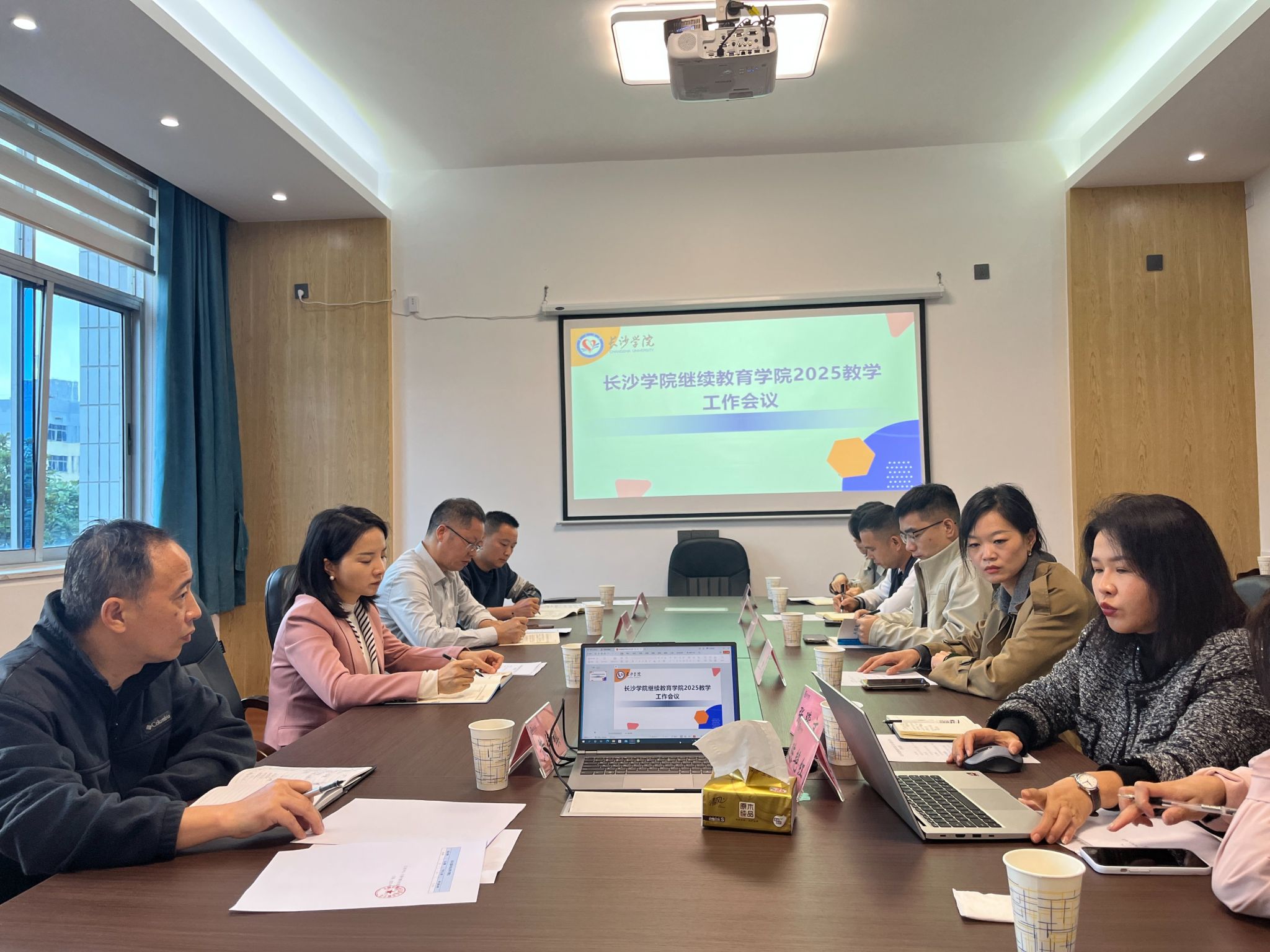 2025年11月10日下午,长沙学院继续教育学院 2025 年下半年教学工作会议在长兴楼 317 会议室举行。会议由继续教育学院副院长郭红卫主持,学院全体人员、校外教学点和线上教学平台负责人参加了会议。