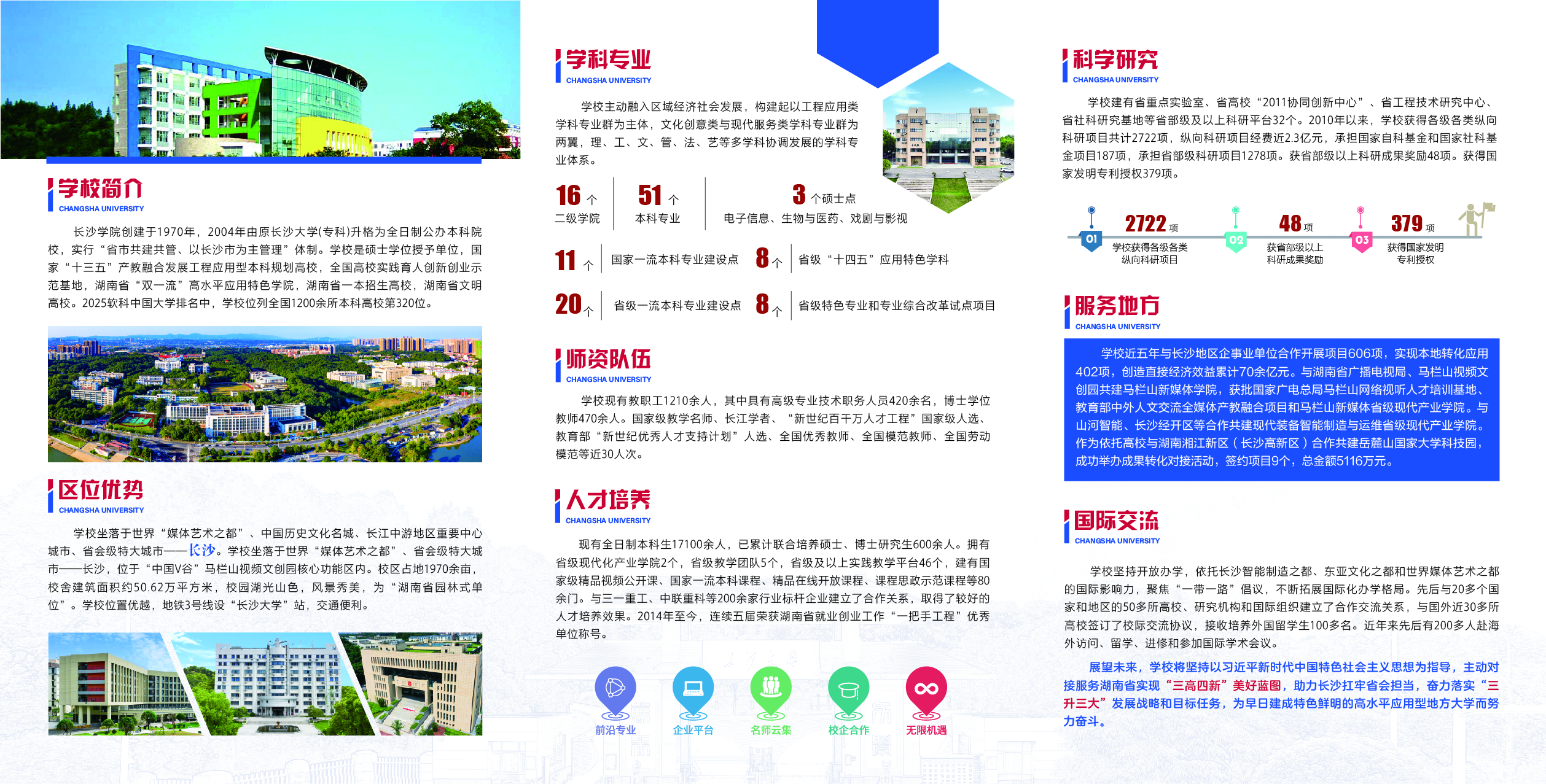 长沙学院创建于1970年,2004年由原长沙大学(专科)升格为全日制公办本科院校,实行“省市共建共管、以长沙市为主管理”体制。学校是硕士学位授予单位,国家“十三五”产教融合发展工程应用型本科规划高校,全国高校实践育人创新创业示范基地,湖南省“双一流”高水平应用特色学院,湖南省一本招生高校,湖南省文明高校。2025软科中国大学排名中,学校位列全国1200余所本科高校第320位。
