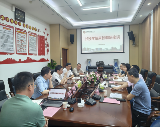 2025年4月15日下午,继续教育学院院长姜浪带队,国际合作与交流处处长青锋、继续教育学院副院长郭红卫、招生科科长黄伟镇一同赴长沙职业技术学院继续教育学院调研交流。长沙职业技术学院党委书记祝磊,党委委员、副校长高鸿,继续教育学院院长贺超才、副院长代光旭,合作交流中心主任唐维刚等领导热情接待了姜浪院长一行。
